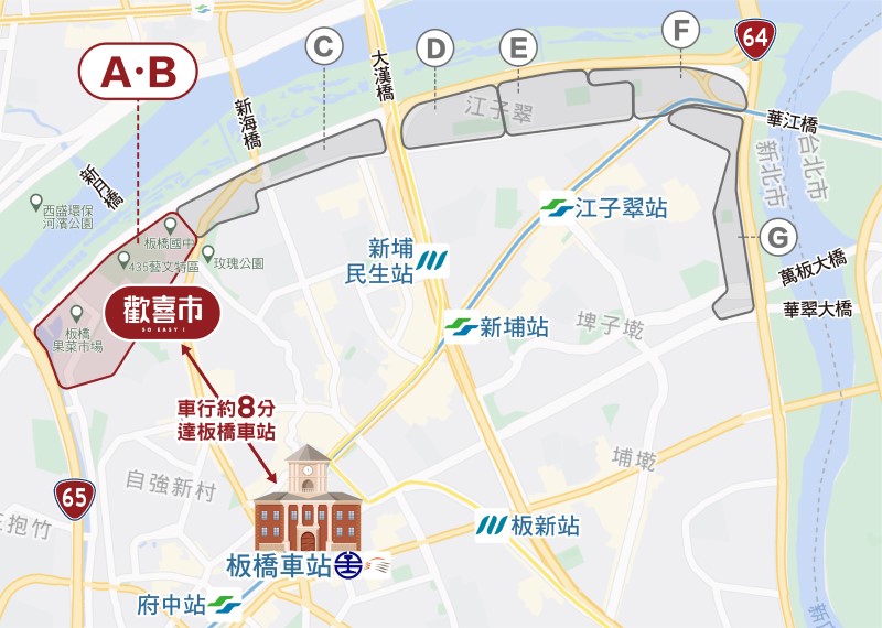 4快8橋+板橋站四鐵共構,快速接軌台北生活圈。