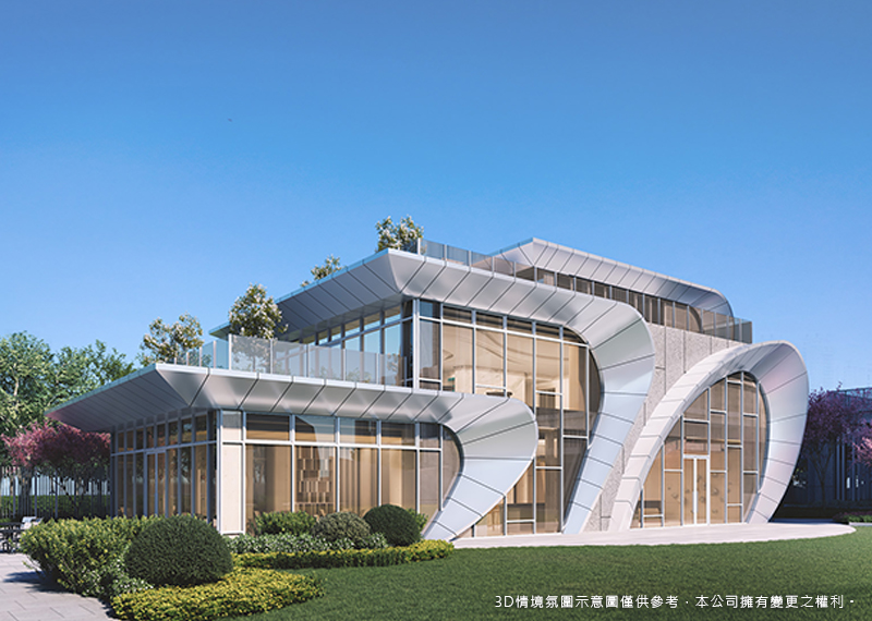 汲取「遊艇」的細膩奢華,運用流動曲線與溫潤圓角,層層疊合成一座遊艇,並將大海的自然元素,融入室內公設語彙,包括輕食咖啡廳、多功能廚藝教室、KTV室,星空酒吧等,更設置戶外泳池,打造層峰人士頂級渡假會所。