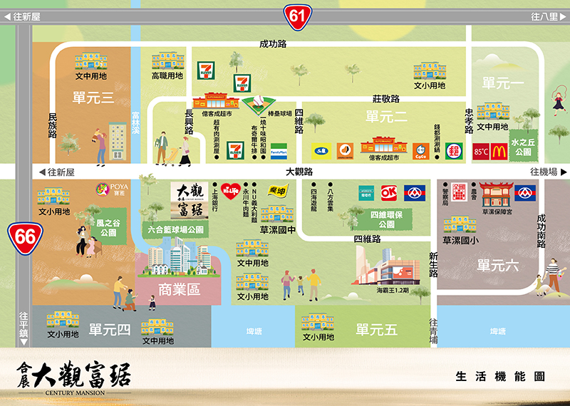 集結智慧與綠能產業的草漯重劃區,正逐步將西部黃金科技廊帶串聯。而「合展大觀富琚」位於大觀路首排,坐擁鑽石級核心地段,成為區內最具潛力的投資標的之一。